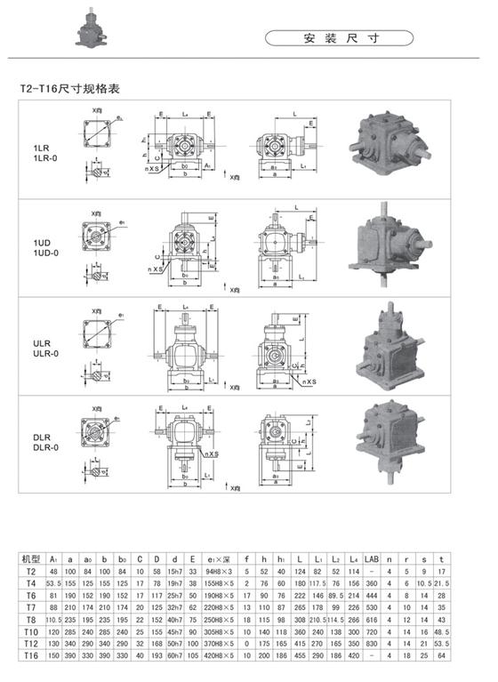 產(chǎn)品型號:T2、 T4 、T6 、T7 、T8、 T10、 T12、 T16 、T20、 T25 詳細(xì)說明:t系列螺旋傘齒輪,采用軸輸入,軸輸出結(jié)構(gòu),可單軸、多軸輸出,可正反方向旋轉(zhuǎn),結(jié)構(gòu)緊湊,占用空間小。因本公司專業(yè)生產(chǎn)銷售各類減速機及支架,大小品種規(guī)格繁多,價格按型號及規(guī)格的不同而不等,而在網(wǎng)上不能將同一系列的多個型號、多種規(guī)格一一列出