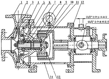不銹鋼防爆高溫保溫磁力泵(風冷/水冷/保溫夾套)結(jié)構(gòu)圖