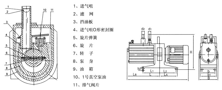 直聯(lián)旋片式真空泵的結(jié)構(gòu)圖及安裝尺寸圖