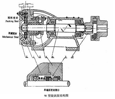 4、W型旋渦泵的密封形式有軟填料密封和單端面機(jī)械密封。除WB和WM型高壓泵用單端面機(jī)械密封外泵出廠時一律裝軟填料密封。如用戶需要其它型式的軸封要在訂貨時說明。
