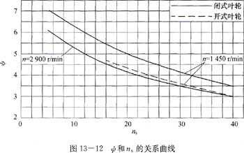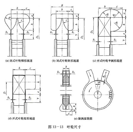 ∞根據(jù)圖13-12確定,對于開式葉輪,葉輪外徑D2(圖13-13)按下式計算