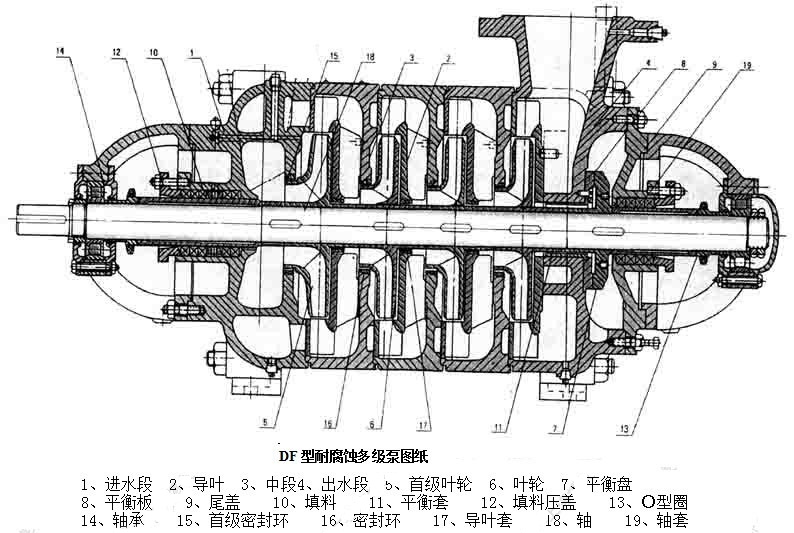 DF型耐腐蝕多級(jí)離心泵結(jié)構(gòu)圖: