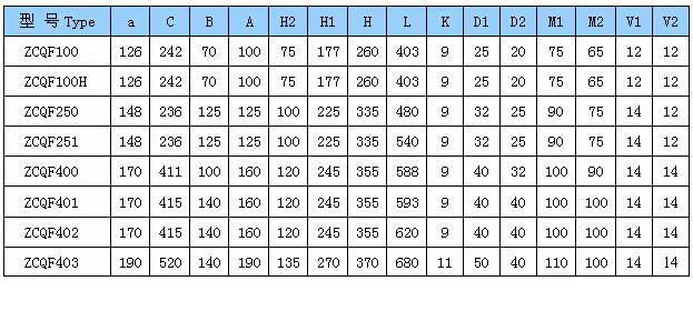 二、ZMD型(ZCQ-F型)四氟自吸磁力泵外形安裝尺寸表: