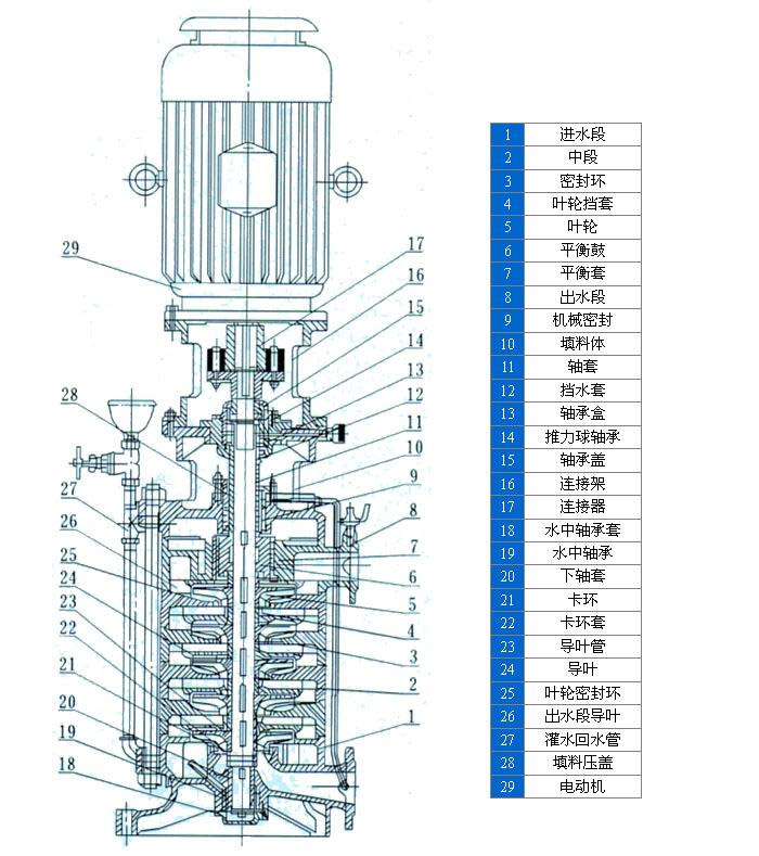 DL型立式清水多級泵結(jié)構(gòu)圖