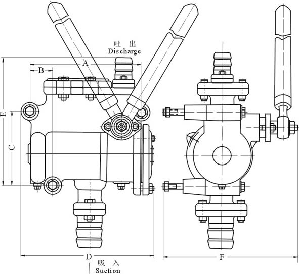 本型手搖泵適用于抽吸清水、汽油、煤油及對鐵和銅等無腐蝕性之液體,不適用于含有纖維或其它固體顆粒之液體。抽吸液體之溫度在60℃以下(系指皮碗式泵)。其性能范圍;流量為15-59升/分,大揚程為30米。