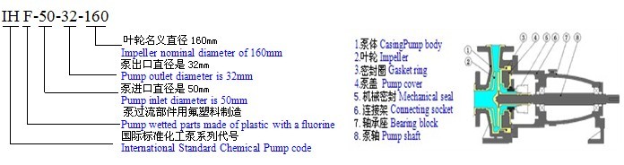 二、IHF氟塑料離心泵型號意義和結(jié)構(gòu)示意圖