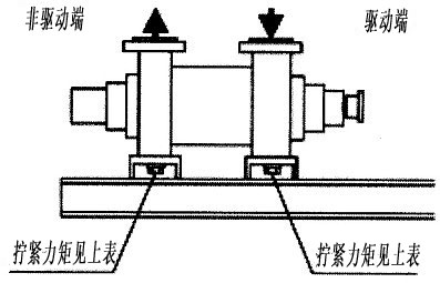 為了傳遞力及力矩,緊定螺栓必須擰緊在泵支腳上。為了彌補由于水泵的熱膨脹可能產(chǎn)生的松動,非驅(qū)動端不必像驅(qū)動端擰得那樣緊。驅(qū)動端和非驅(qū)動端系緊螺釘?shù)臄Q緊力矩見下表。