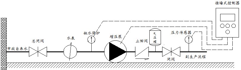 臨時供水系統(tǒng)組成圖,當(dāng)功率較大時,控制器不能采用掛墻式,必須采用落地式控制器才能保證良好的散熱