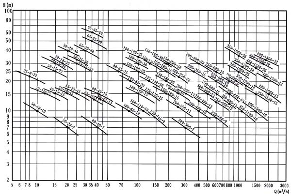 【LW型立式無堵塞排污泵】性能型譜圖: