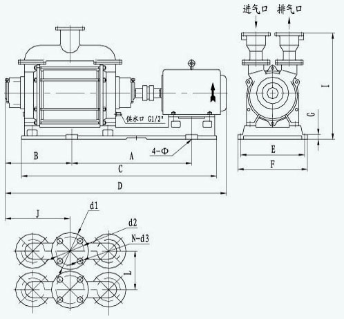 - 直聯(lián)旋片式真空泵的結(jié)構(gòu)圖及安裝尺寸圖