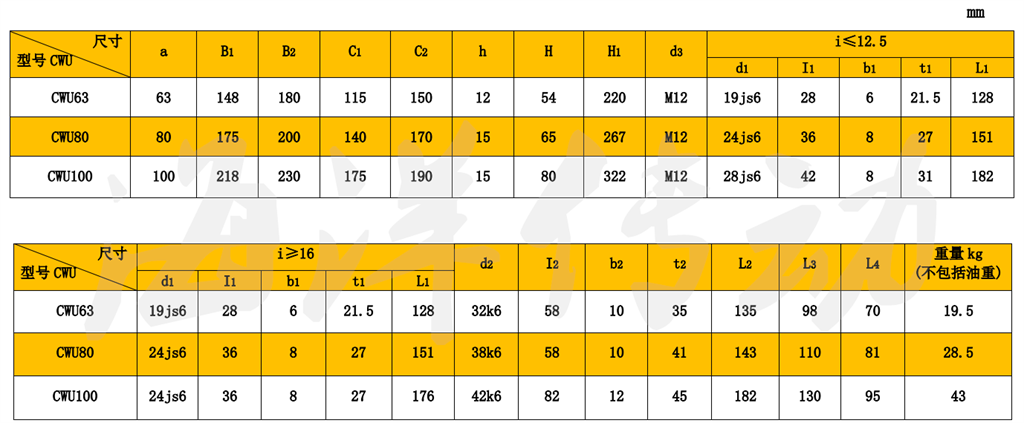 內容: CWU- 蝸桿在蝸輪之下的圓弧圓柱蝸桿減速機