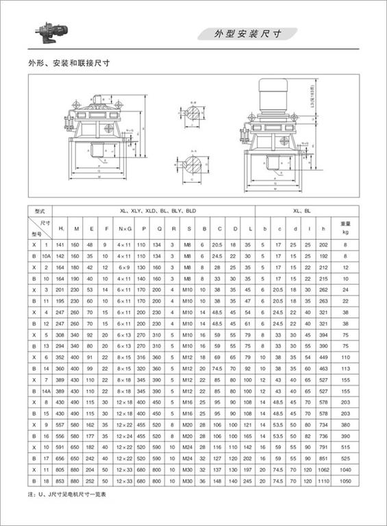 減速機|擺線針輪減速機-B、X系列擺線針輪減速機外型安裝尺寸-海洋傳動