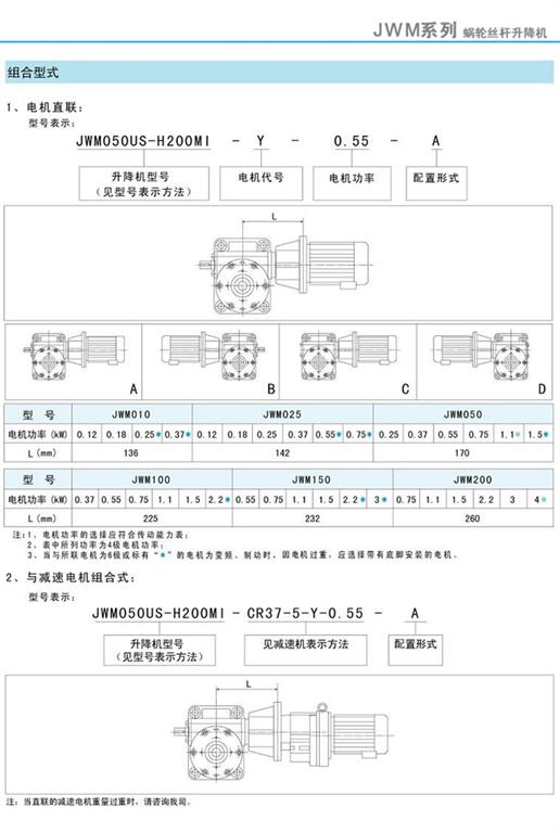 JWM升降機與電機直聯(lián)型號表示及與減速電機組合式