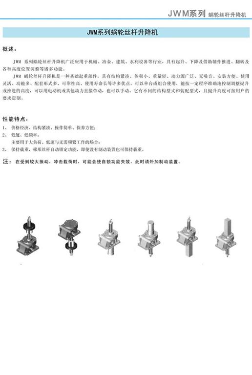 JWM系列蝸輪絲桿升降機產(chǎn)品概述及性能特點