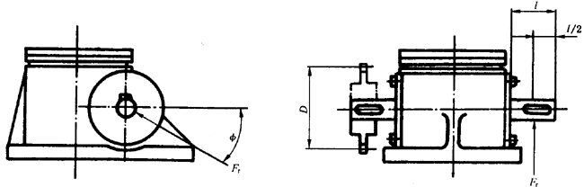 蝸桿軸伸上,由于安裝齒輪、鏈輪或帶輪所產生的徑向力Fr,其最大許用力與起升力和型號有差在1/2處所許用的最大徑向力和扭矩見圖B1和表B1。